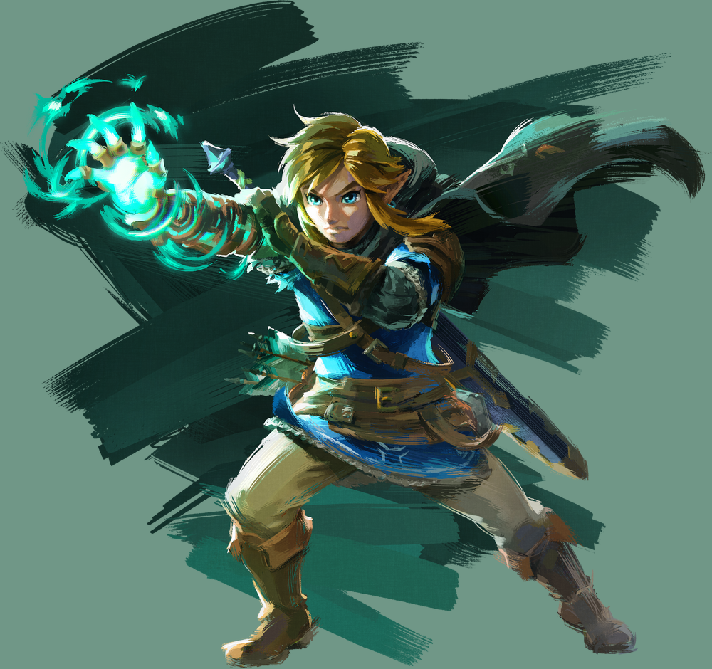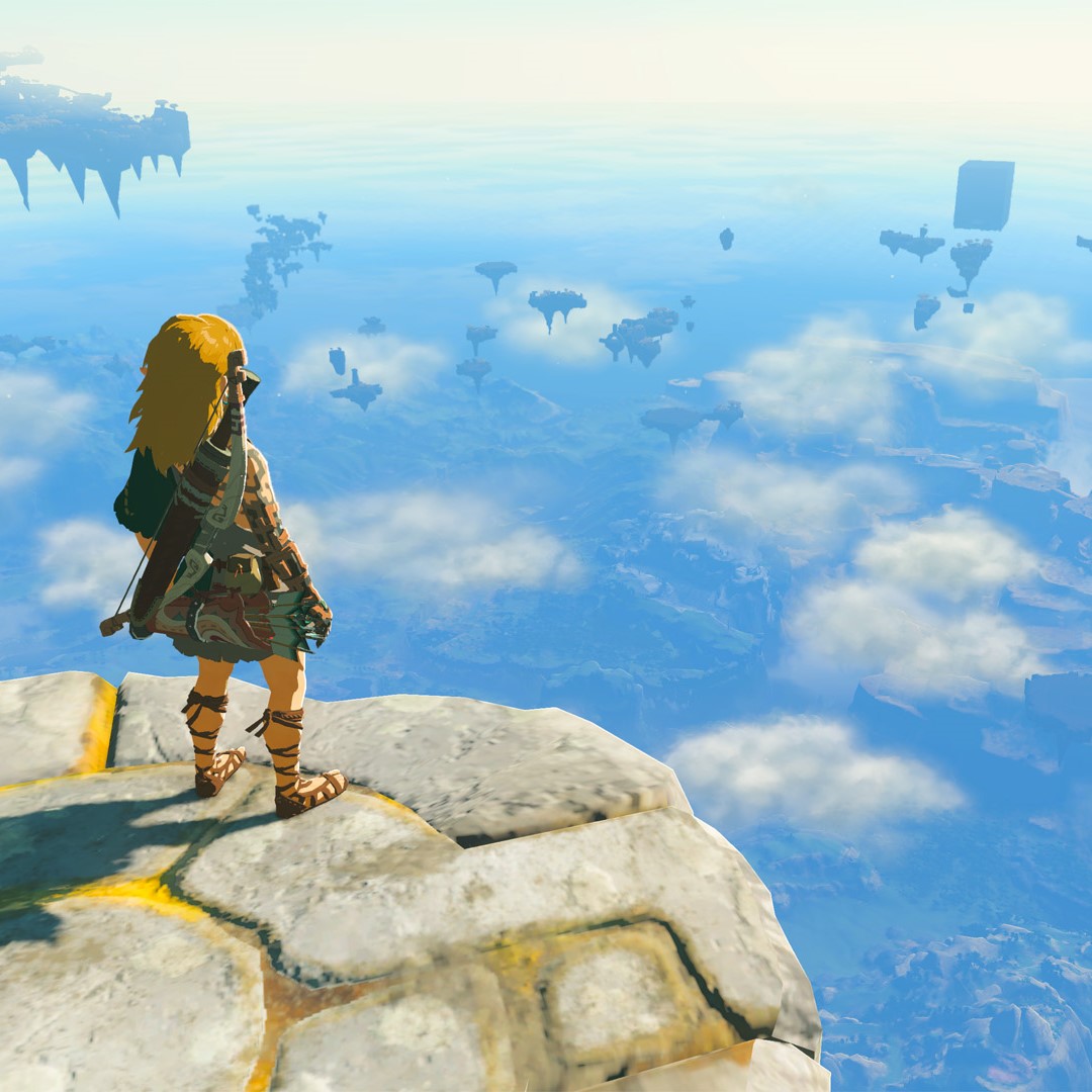 As Link, the player explores the main setting of Hyrule and two new areas: the sky, which has several floating islands, and the Depths, a vast underground area beneath Hyrule. Link can climb, ride horses, or use a paraglider to soar through the air.
